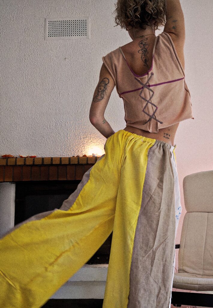 My service to my own needs and to the world, in the form of essential clothing, made with reused materials from natural fibers.